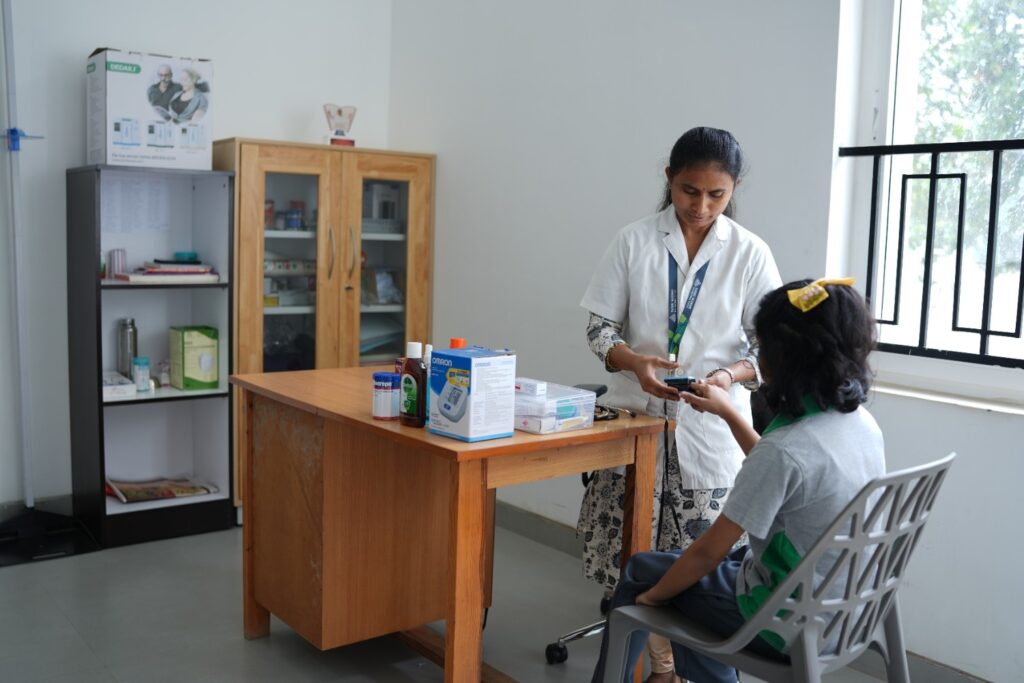 The school has an infirmary with a qualified nurse to assist the students when they need immediate medical attention. We also have a tie-up with the nearest hospital for any emergencies until the parents arrive.