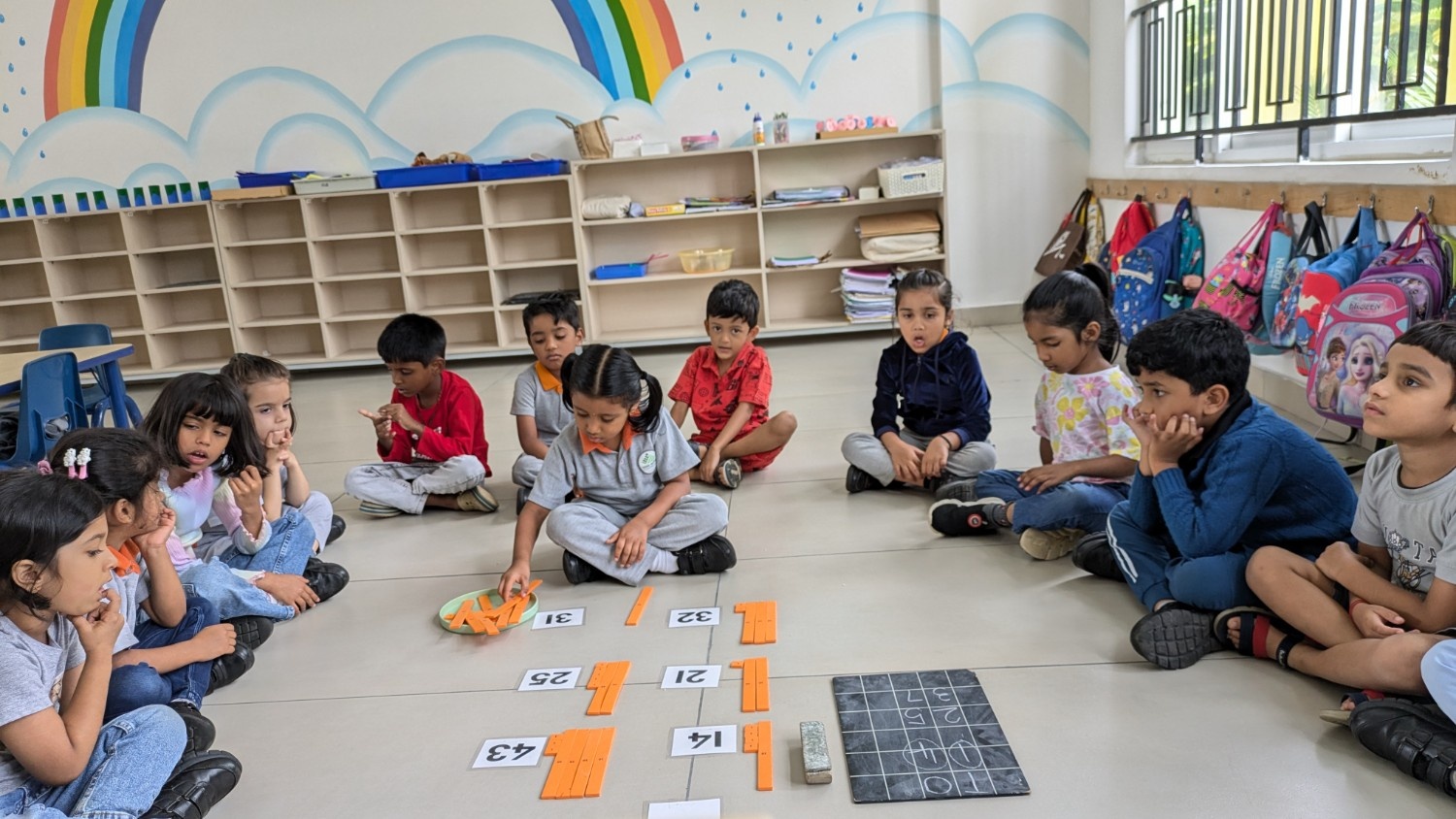 Play-based and experiential learning, Montessori-inspired sensorial activities, storytelling, collaboration, hands-on exploration, outdoor learning, technology-enabled classrooms, early literacy & numeracy readiness.